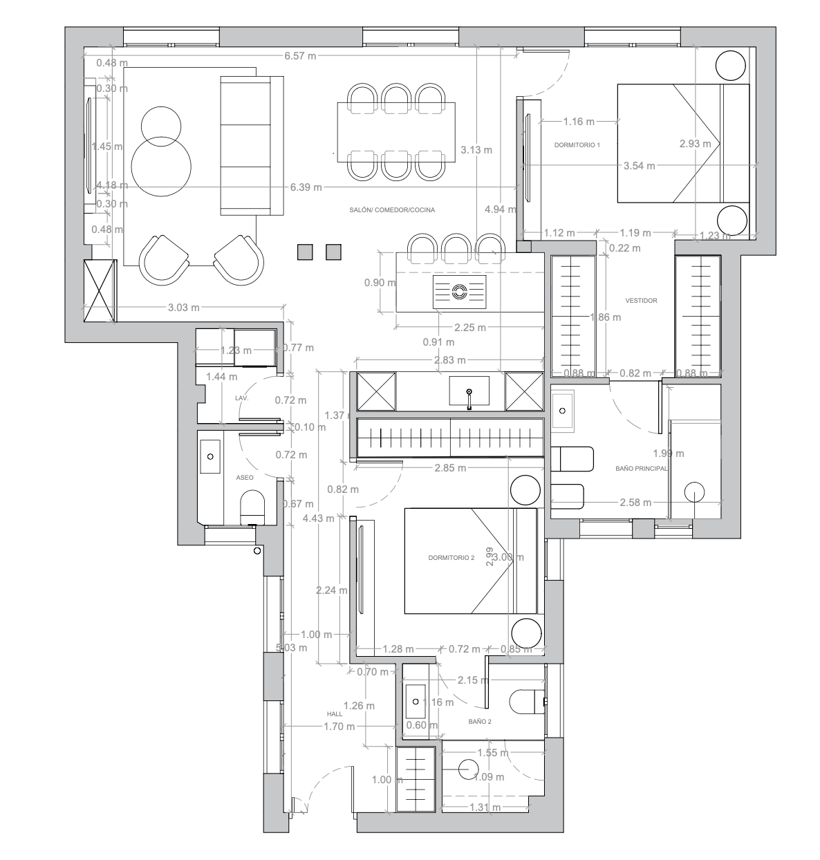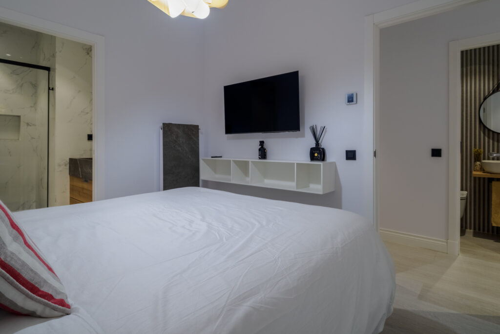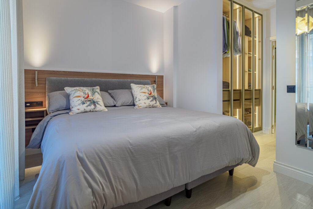 La distribución incluía un salón con cocina americana, dos dormitorios con baños en suite, aseo de cortesía y cuarto de lavandería. El dormitorio principal destacaba por disponer de un vestidor amplio, aportando funcionalidad y confort.